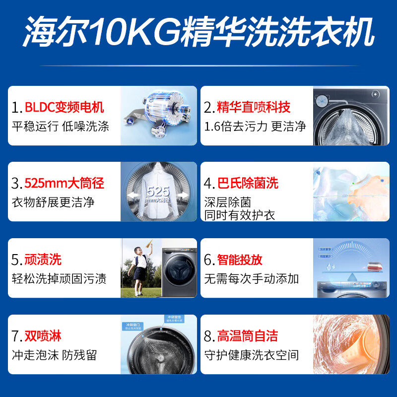 海尔(Haier)10KG精华洗滚筒洗衣机全自动大容量家用变频一级能效智能投放大筒径+巴氏除菌G10028BD14LS[家电]价格:3299.00元!