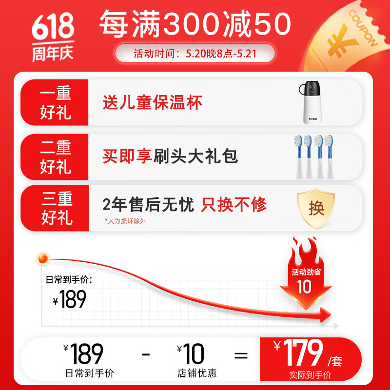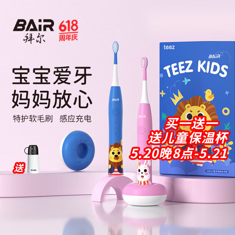 拜尔K5 儿童电动牙刷 声波震动感应充电 防水特护软毛小孩学生男女童宝宝专用3-6-9岁送孩子 科技蓝价格:189.00元!