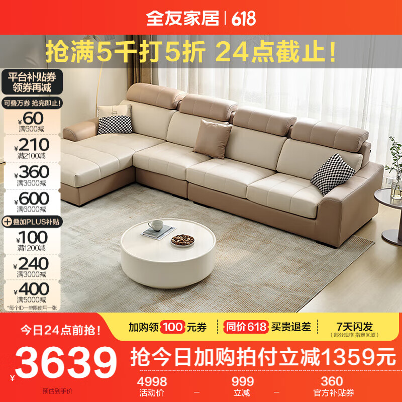 全友家居 大户型客厅转角L型沙发家具现代简约贵妃科技布艺沙发102251价格:4998.75元!