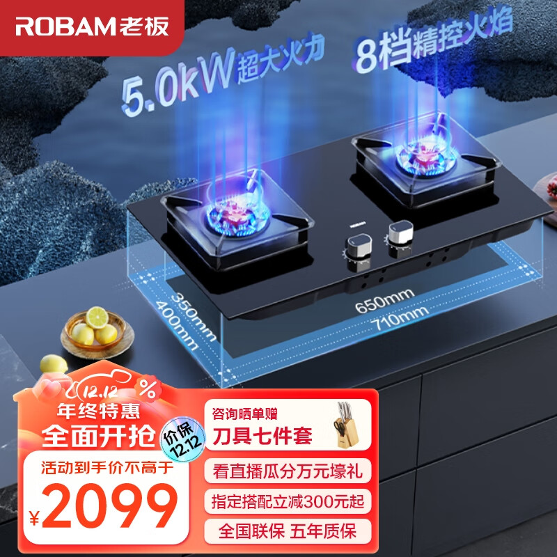老板(Robam)JZY-57B6D家用燃气灶液化气灶双灶嵌入式 5.0kW大火力猛火灶易打理可调节底盘灶具灶台换灶选老板价格:2099.00元!