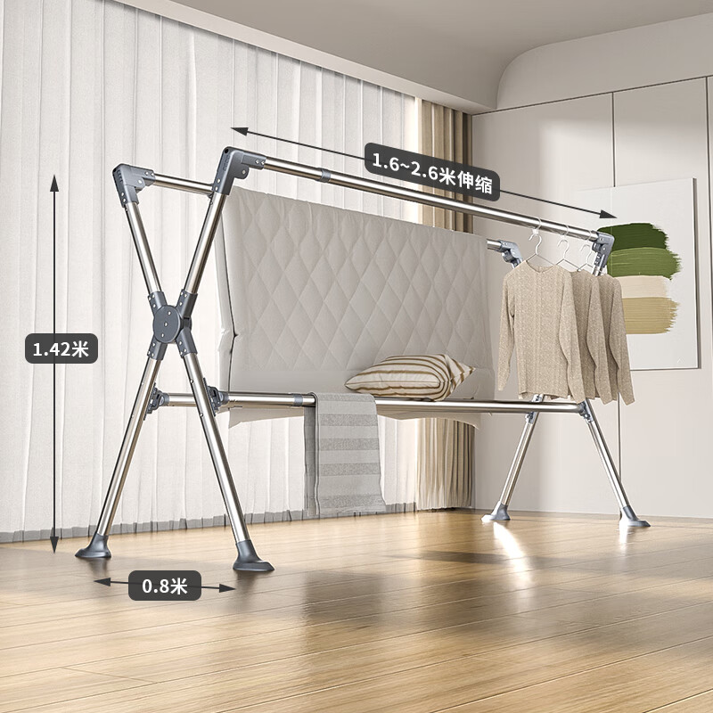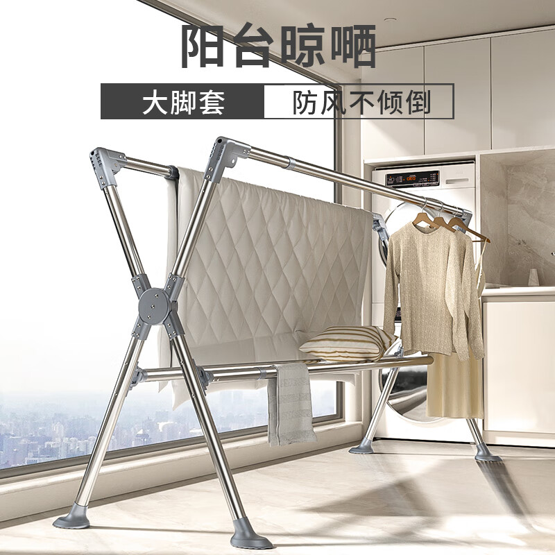 豪客家(HKG)晾衣架落地四杆折叠室内外家用阳台卧室加粗不锈钢凉衣杆晒被子价格:268.00元!