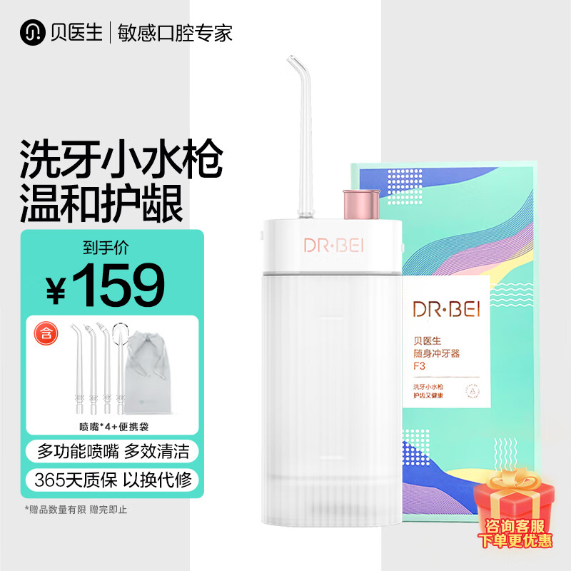 贝医生(DR·BEI) 正畸冲牙器便携家用洗牙器洁牙器水牙线清洁口腔牙套 国货旅行洗漱套装 清洁亮白护龈 送女友礼物 F3 新限定礼盒 4支喷头价格:299.00元!