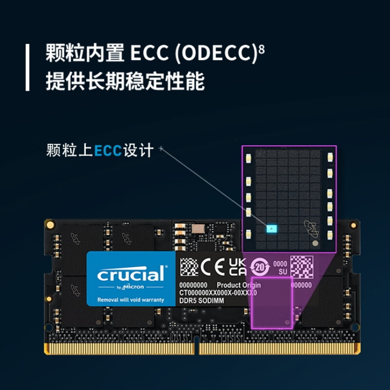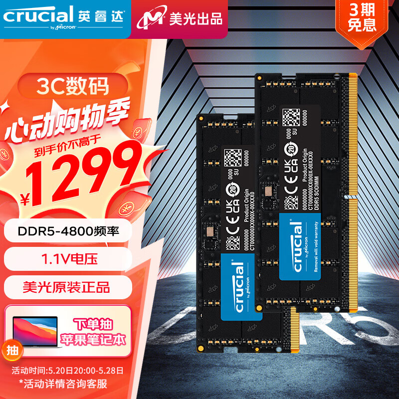 Crucial英睿达 64GB(32GB×2)套装 DDR5 4800频率 笔记本内存条 美光原厂颗粒 助力AI价格:1299.00元!