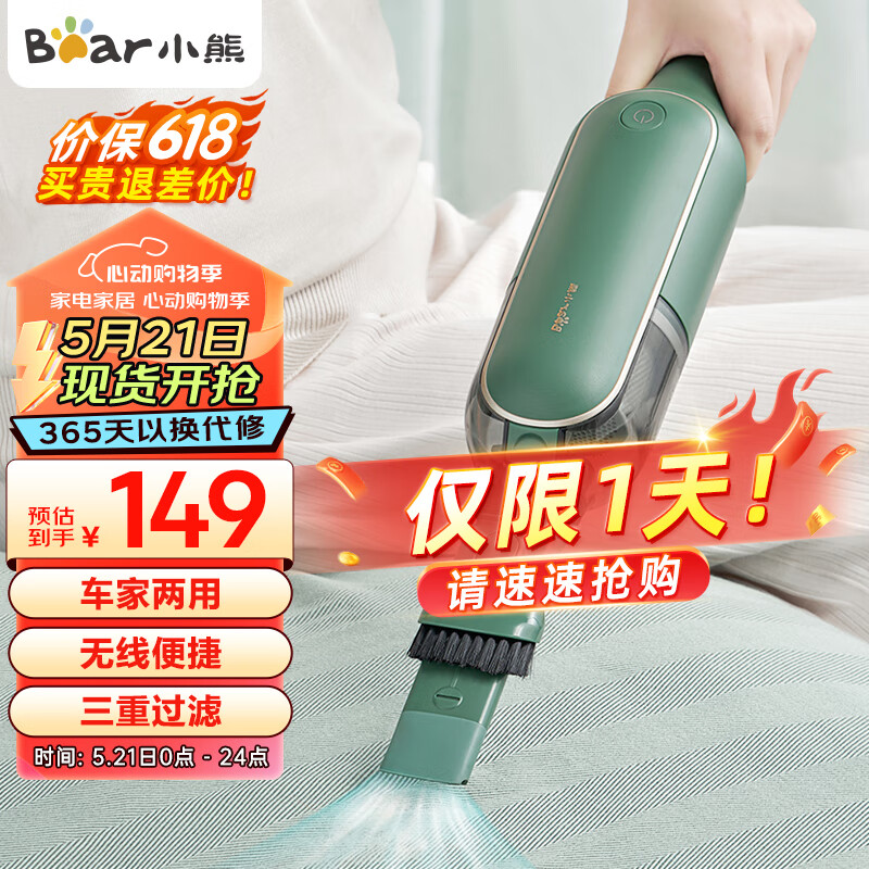小熊(Bear)吸尘器 手持无线吸尘器 大吸力便携长续航高效吸尘器 XCQ-B01R1价格:149.00元!