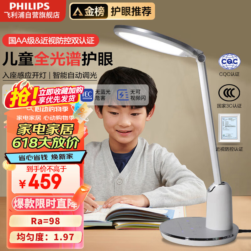 飞利浦(PHILIPS)台灯护眼智能学习全光谱儿童学生国AA级卧室阅读台灯感应轩坦WIZ价格:899.00元!