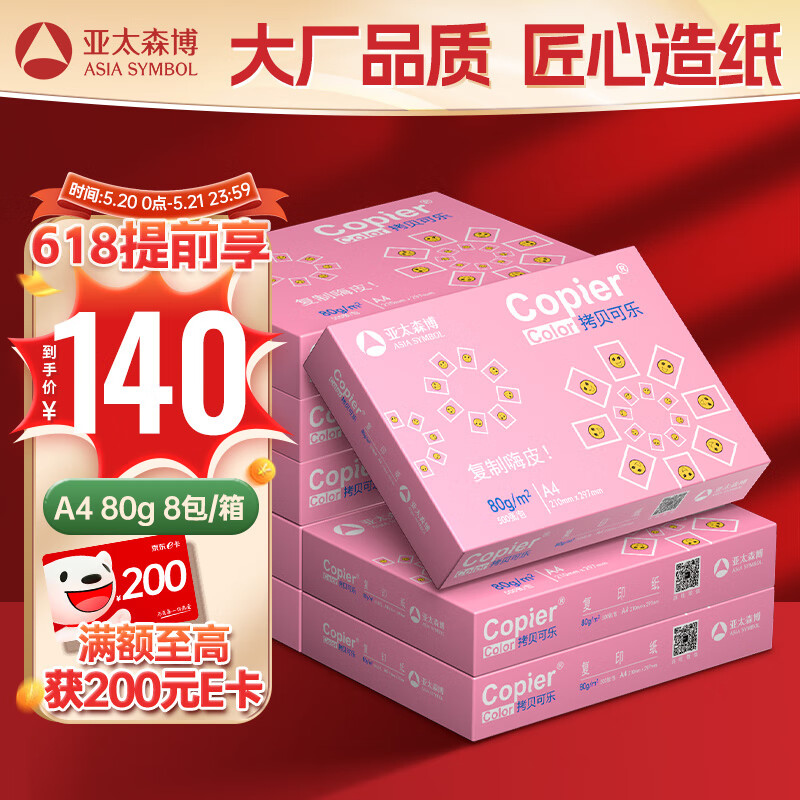 此款亚太森博粉拷贝可乐80g A4 8包/箱还不错的,物流速度快,商品包装完好无损。