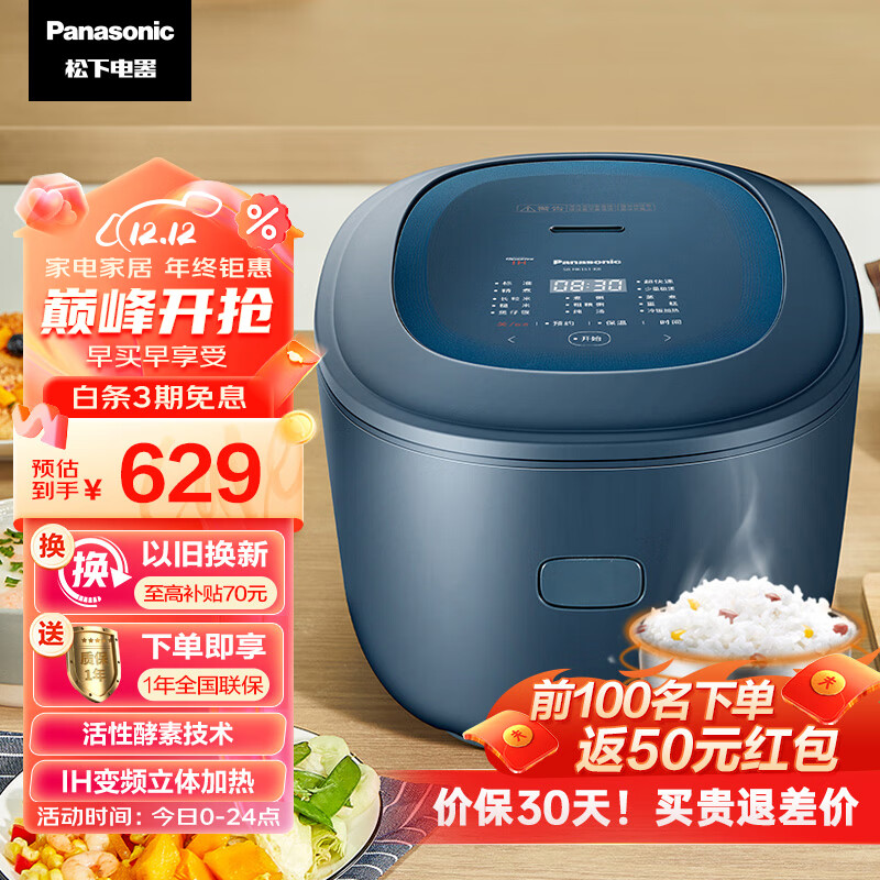 松下(Panasonic)电饭煲电饭锅4L真香煲 进口备长炭涂层 IH变频加热家用电饭锅 多功能烹饪 可预约HK151-KB价格:719.00元!