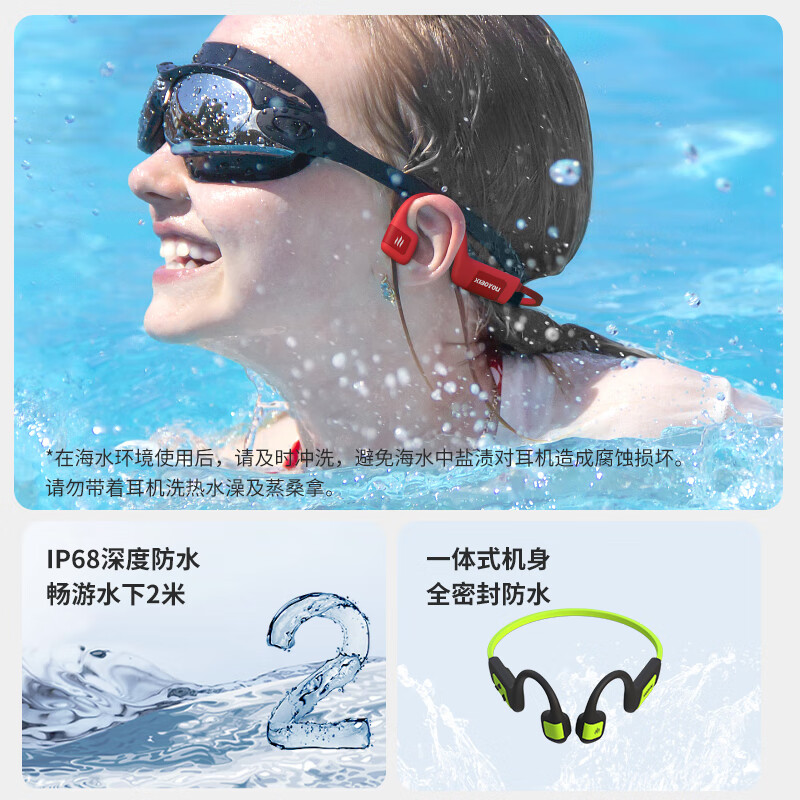 小幽骨传导X8蓝牙耳机游泳耳机跑步降噪8级防水运动专业骨传感不入耳挂耳式自带32G内存价格:299.00元!