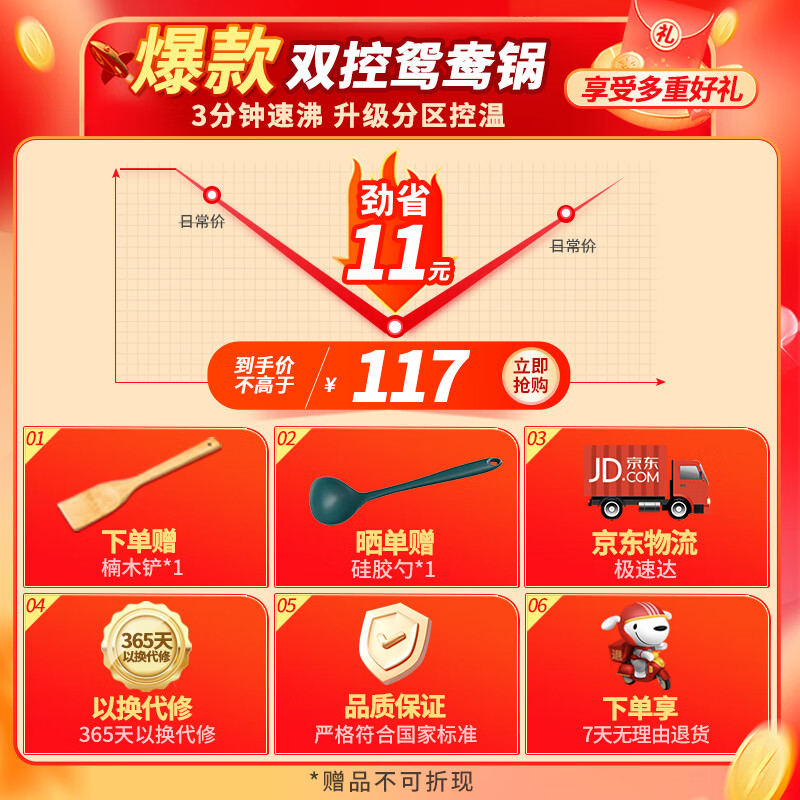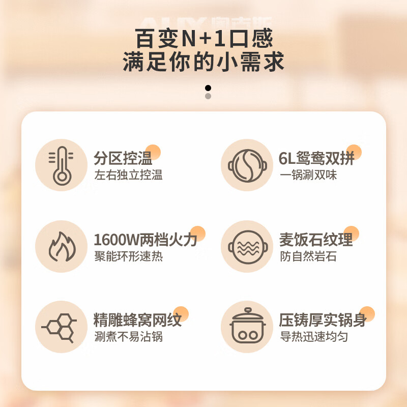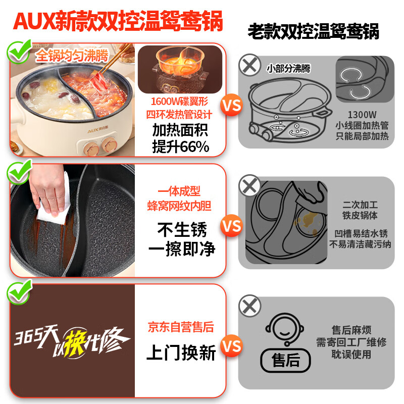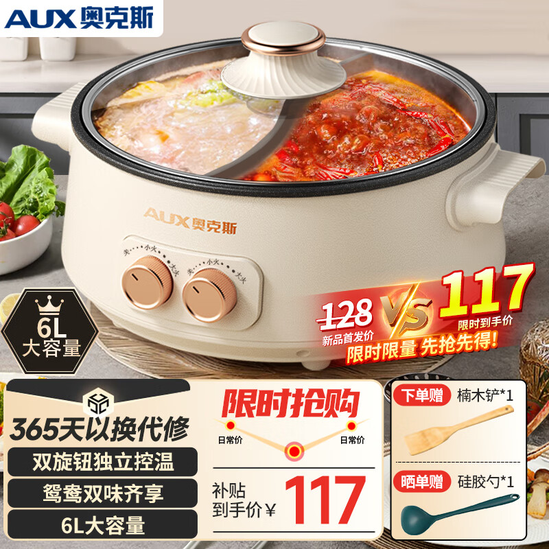 奥克斯(AUX)鸳鸯锅 电火锅 多用途锅电煮锅电锅一体多功能锅家用电热锅火锅专用锅6L WW-M8287价格:117.00元!