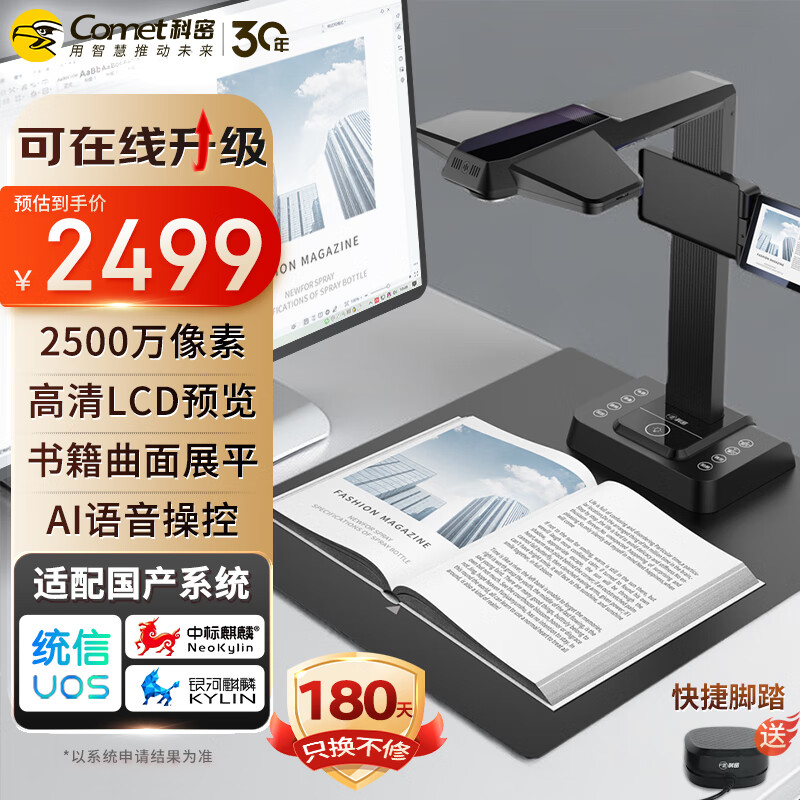 科密(comet) 高拍仪 2500万像素A3A4可升级扫描仪 实时投影 书籍曲面展平免拆成册 预览屏 P2900AF价格:2499.00元!