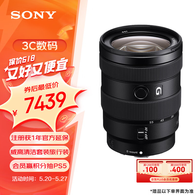 索尼(SONY)E 16-55mm F2.8 G APS-C画幅标准变焦G镜头 (SEL1655G)价格:7839.00元!