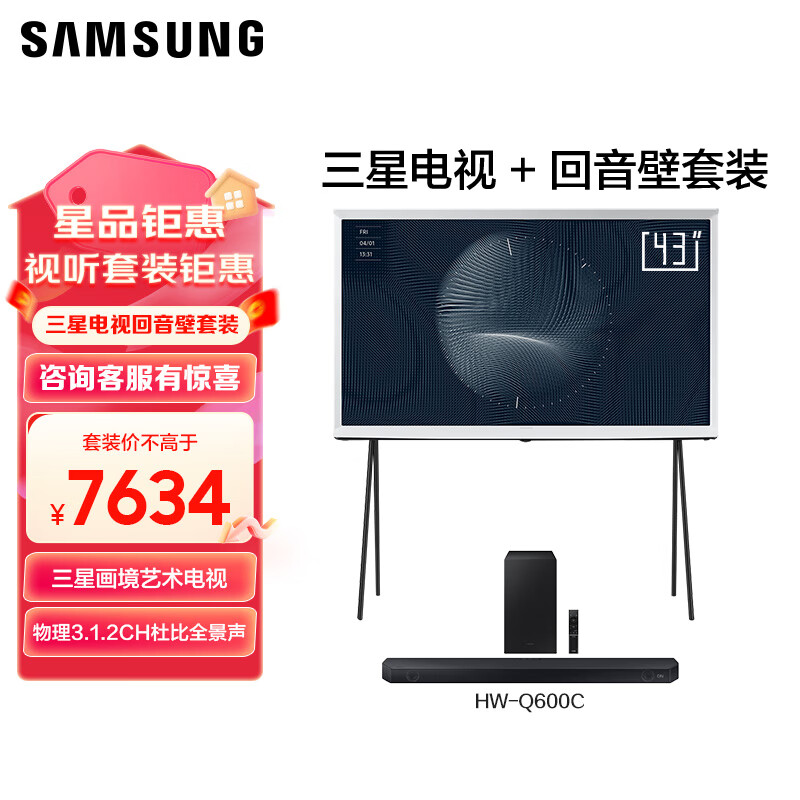 三星(SAMSUNG)43LS01C 43英寸 Serif画境艺术电视 超薄4K哑光屏显 QA43LS01CAJXXZ +HW-Q600C/XZ音箱套装价格:7634.00元!