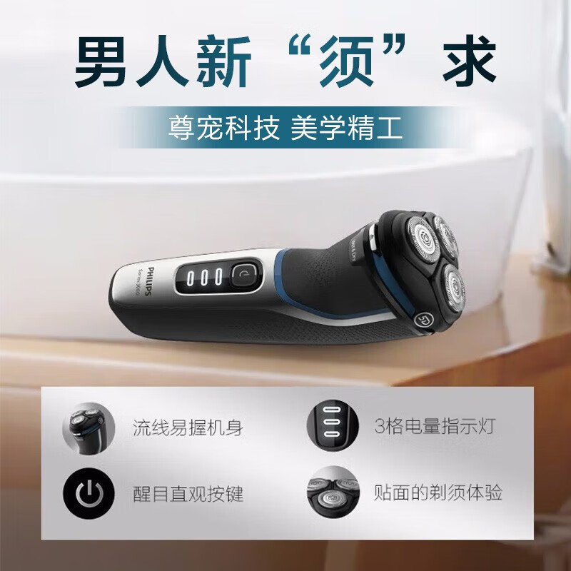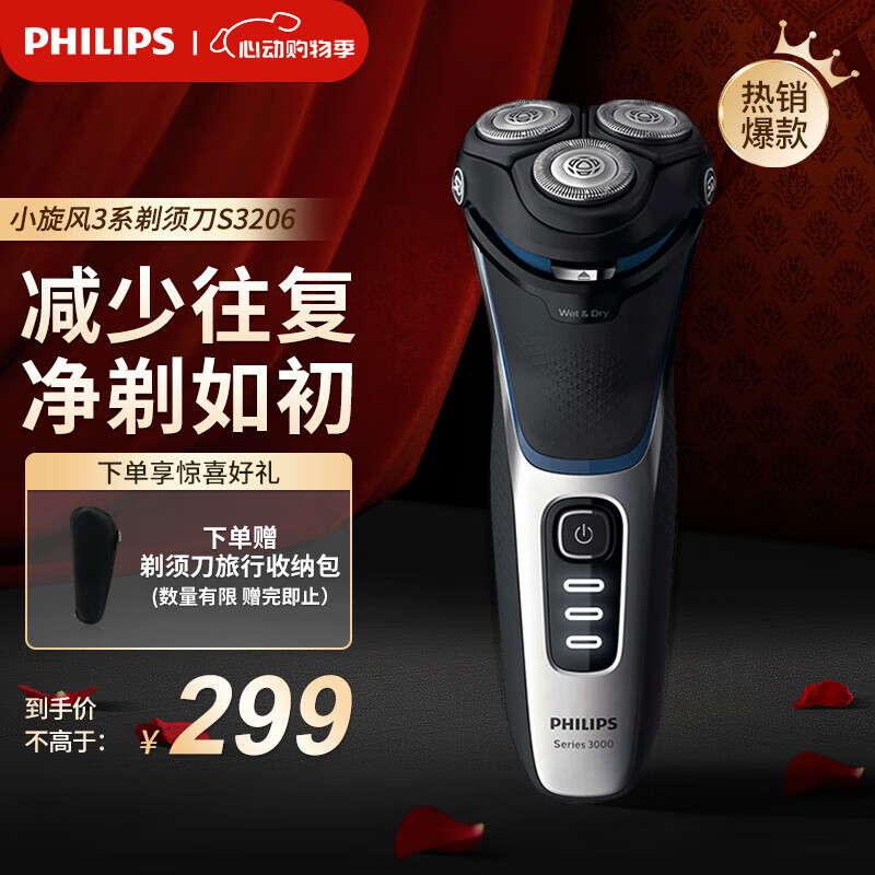 飞利浦(PHILIPS)剃须刀电动刮胡刀 高端3系整机进口胡须刀 520情人节礼物送男朋友送老公送长辈 S3206/09 普通装价格:299.00元!