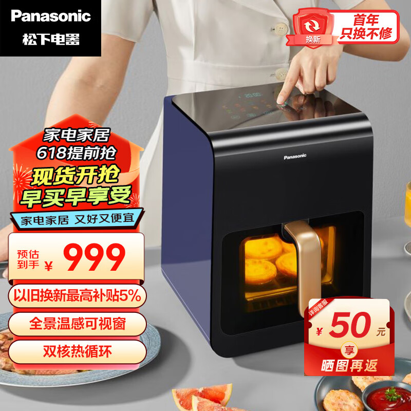 松下(Panasonic)多功能全程可视家用全自动无油6L大容量 无需翻面 空气炸锅 NF-HC600-A价格:949.00元!