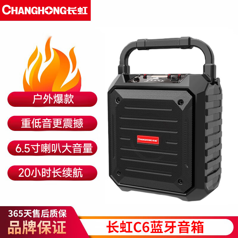长虹(CHANGHONG)C6无线蓝牙音箱户外大音量广场舞音响便携式低音炮家用K歌带麦克风收音机音乐播放器微信收款喇叭价格:199.00元!