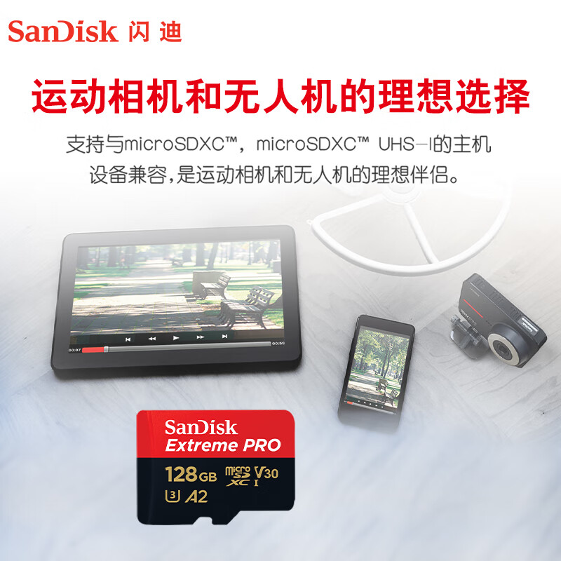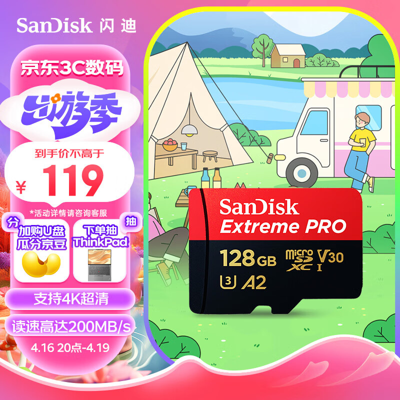 闪迪(SanDisk)128GB TF(MicroSD)存储卡U3 C10 V30 A2 4K 超极速移动版内存卡 提速升级 读速200MB/s价格:119.00元!