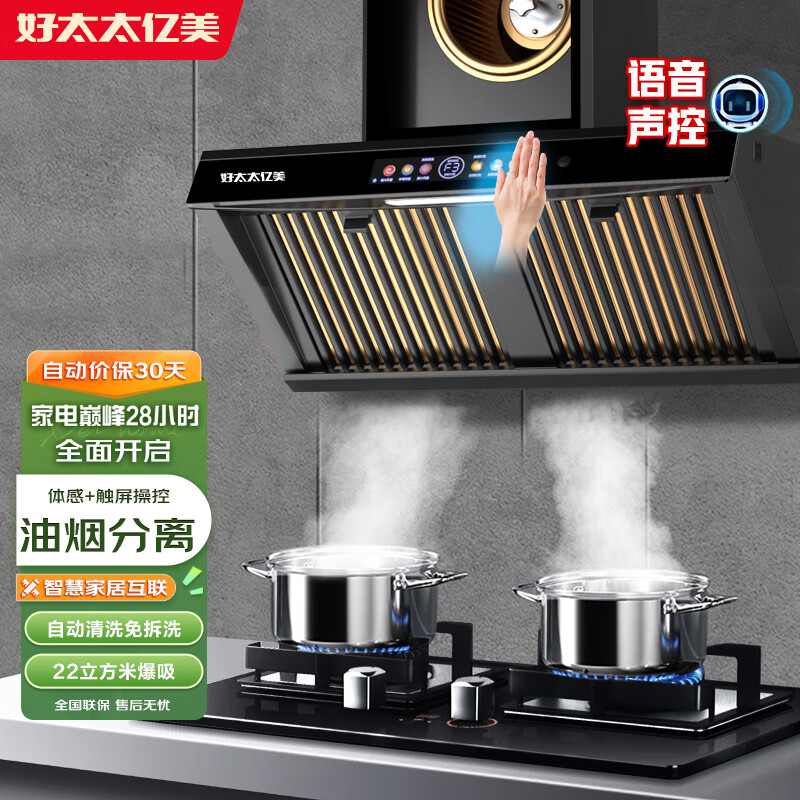 好太太亿美油烟机油烟分离抽油烟机家用厨房吸油烟机橱柜油烟机22立方大吸力CXW-298-V8A价格:1099.00元!
