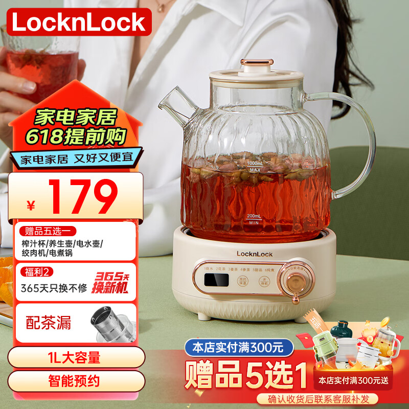 乐扣乐扣养生壶 1L煮茶器含茶漏 家用玻璃花茶壶烧水壶办公室电热水壶煮茶壶价格:179.00元!