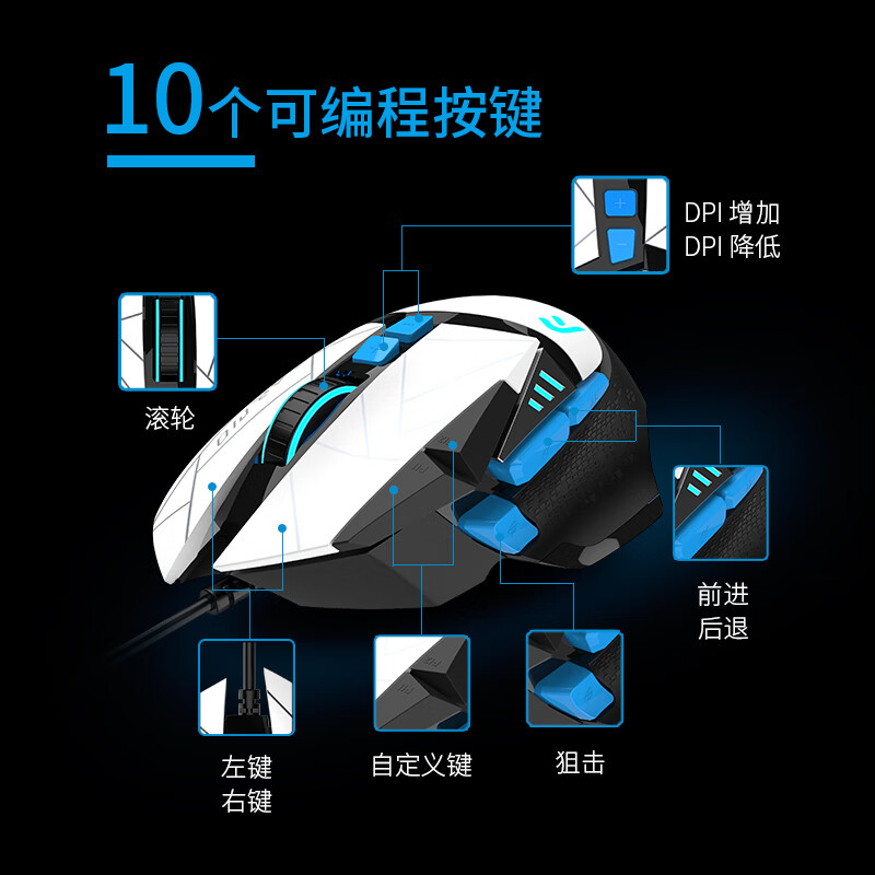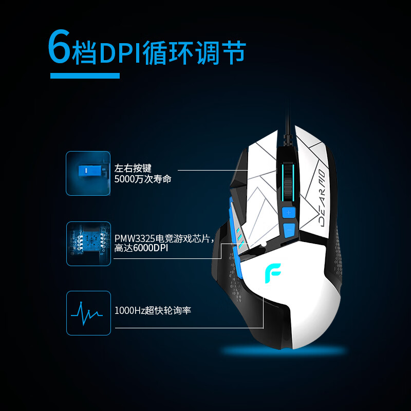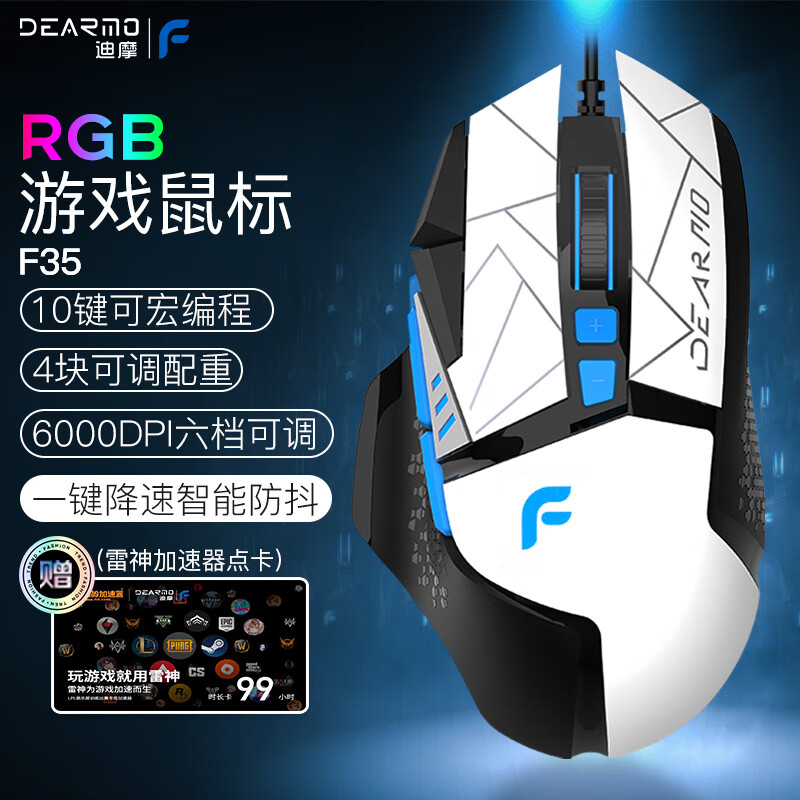 迪摩(DEARMO)F35有线鼠标游戏鼠标电竞RGB鼠标绝地求生吃鸡鼠标可调配重块鼠标 FDM版 6000DPI价格:159.00元!