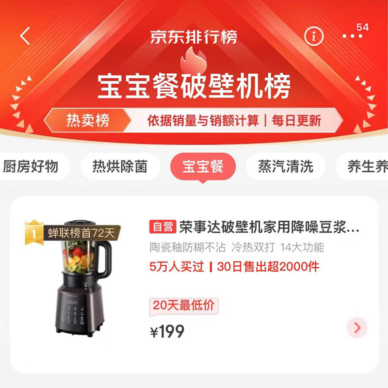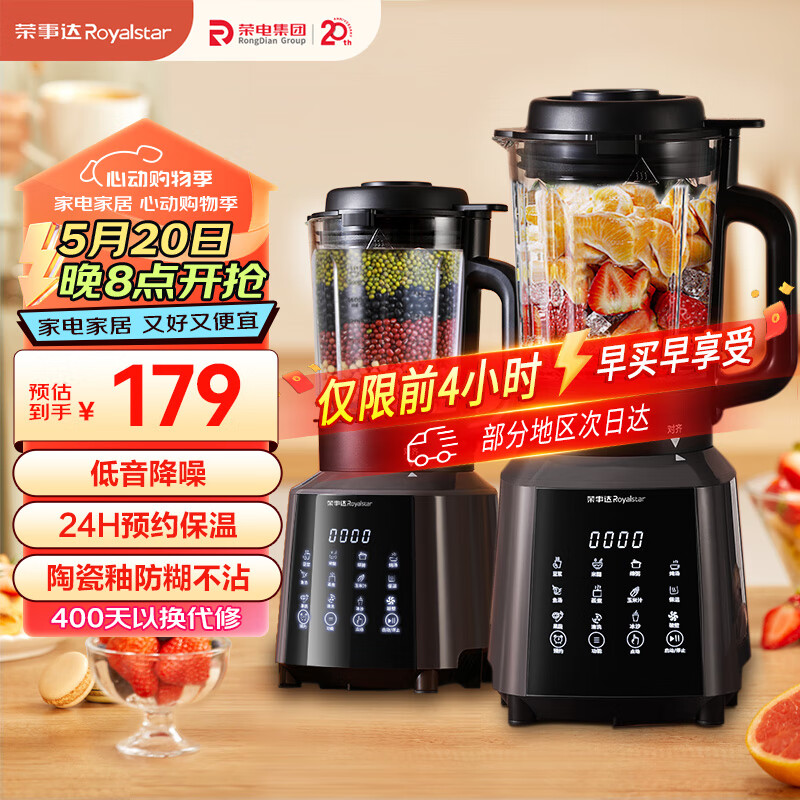 荣事达(Royalstar)破壁机家用降噪豆浆机多功能加热预约搅拌料理机婴儿辅食机榨汁机早餐机RZ-0412C1价格:199.00元!