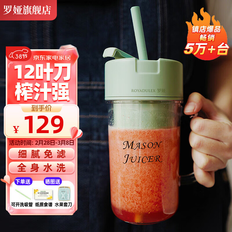 罗娅 16叶刀头榨汁机便携式榨汁杯小型多功能果汁杯果汁机水果机电动随行杯秒碎冰多功能搅拌杯梅森杯 12刀清新绿340ml含吸管【晒图领食谱+水果刀】价格:129.00元!