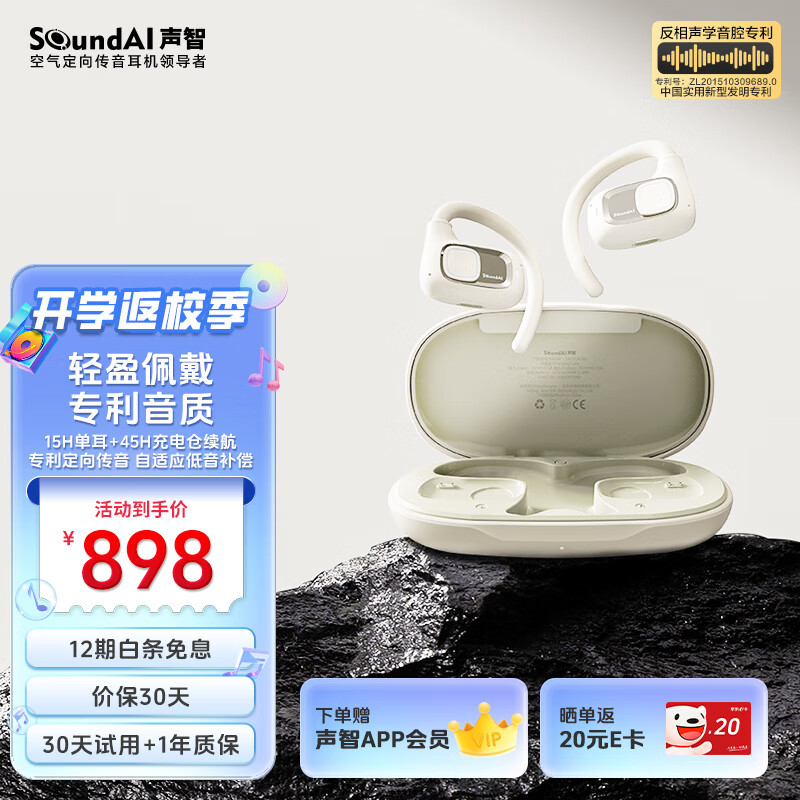 声智云耳开放式蓝牙耳机 不入耳挂耳式运动耳机 跑步骑行长续航防漏音通话降噪 柔沙白价格:1298.00元!