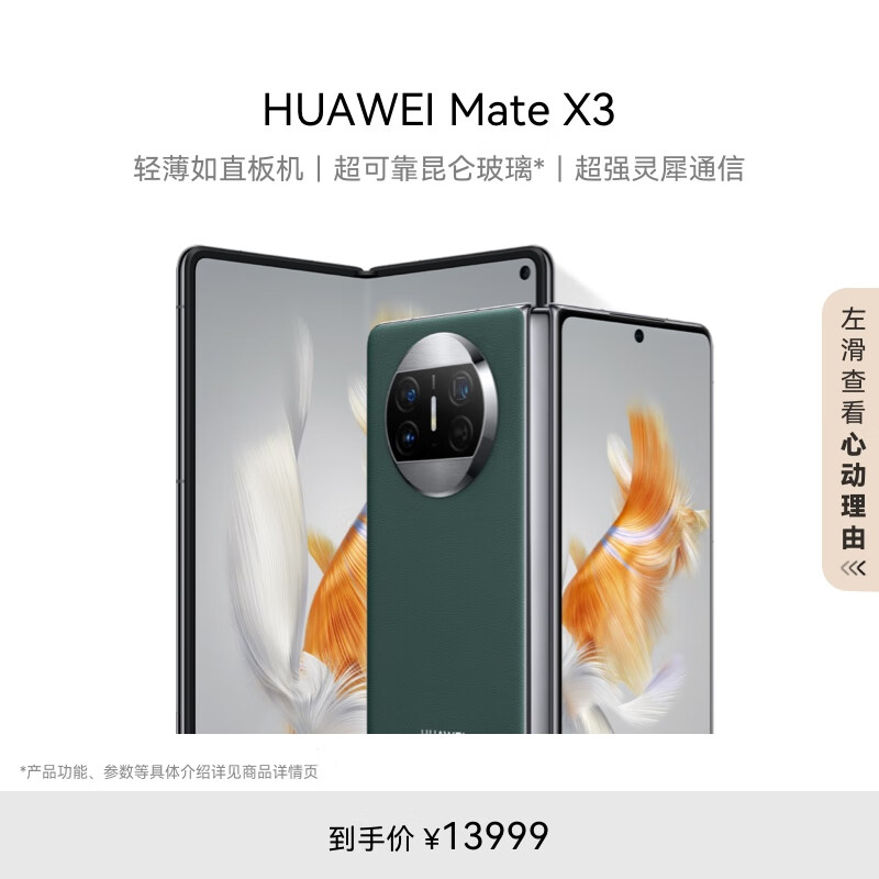 华为/HUAWEI Mate X3 折叠屏手机 超轻薄 超可靠昆仑玻璃 灵犀通信 512GB 青山黛 鸿蒙智能旗舰价格:13999.00元!