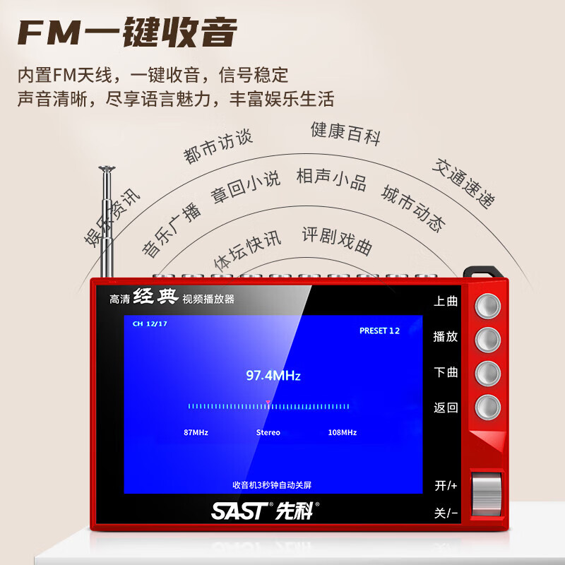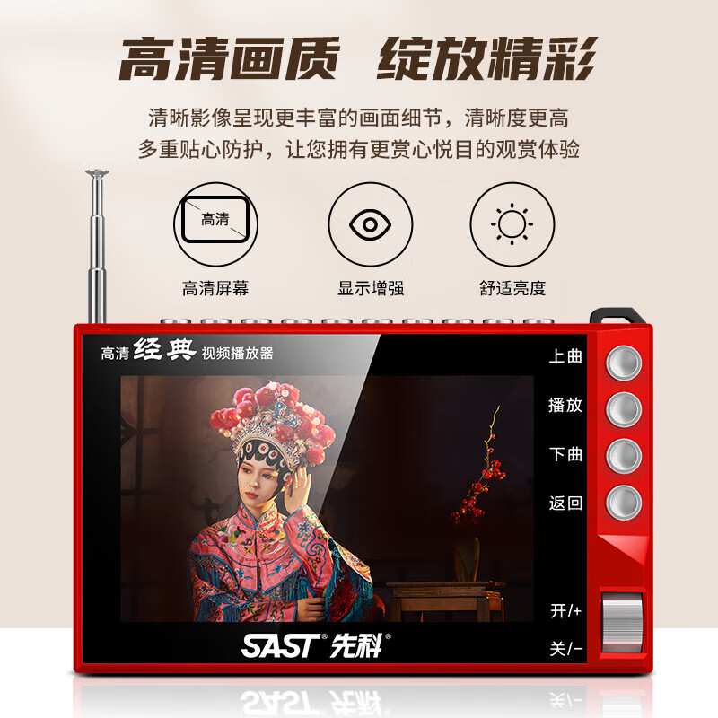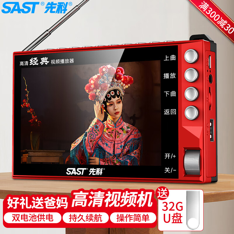 先科(SAST)S5D老人唱戏机便携式老年听戏机广场舞音箱视频机音响带显示屏收音机视频播放器移动小电视U盘版价格:199.00元!