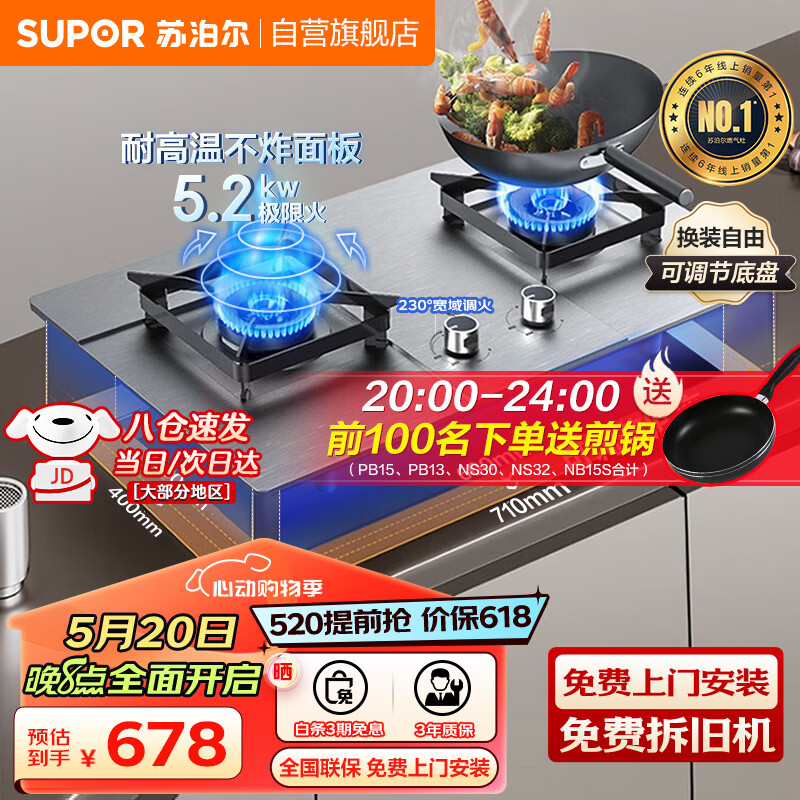 苏泊尔(SUPOR)家用燃气灶天然气煤气灶5.2KW大火力台式嵌入式两用灶具不锈钢液化气猛火灶耐高温不炸面板NS32 【管道天然气】5.2KW蓝焰猛火价格:778.00元!