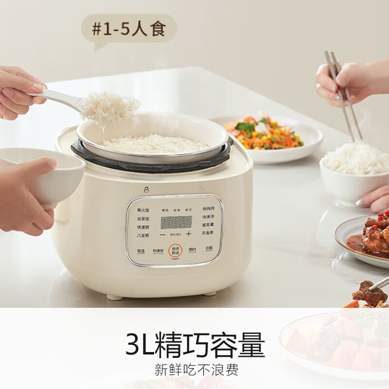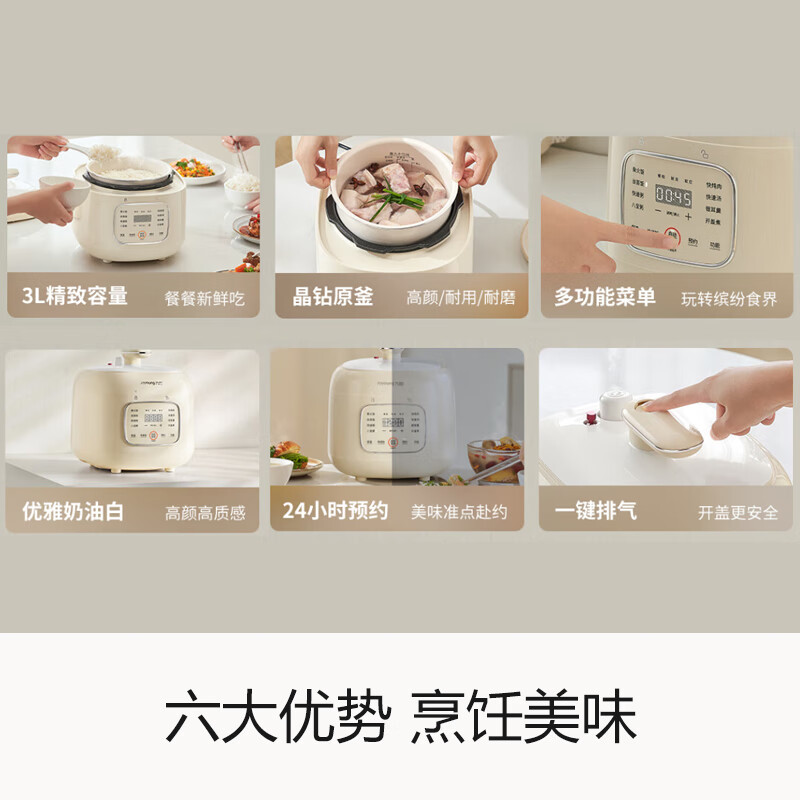 九阳(Joyoung)3L精致小容量电锅电煲一键排气多功能菜单晶钻原釜内胆优雅奶油白3升30H25价格:319.00元!