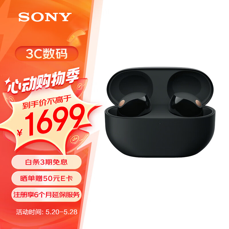 索尼(SONY)WF-1000XM5 真无线蓝牙降噪耳机 新一代降噪豆 智能AI 蓝牙5.3 黑色价格:1699.00元!
