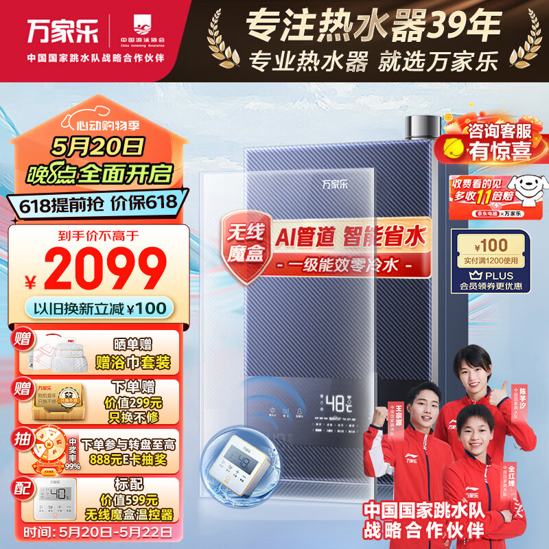 万家乐 16升冷凝式增压零冷水燃气热水器 1级能效净化水质 双屏分控wifi智控JSLQ27-16RL7价格:3598.00元!