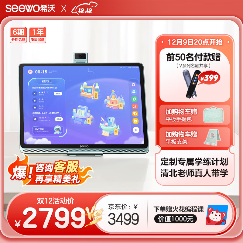 希沃护眼学习平板V1 Pro 类纸护眼学习机学练机家教机小学初中高中学生专用智能学习平板4G+256G价格:2799.00元!