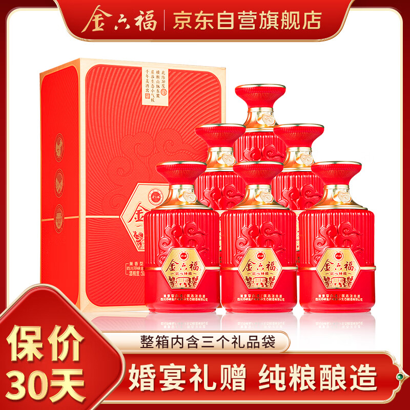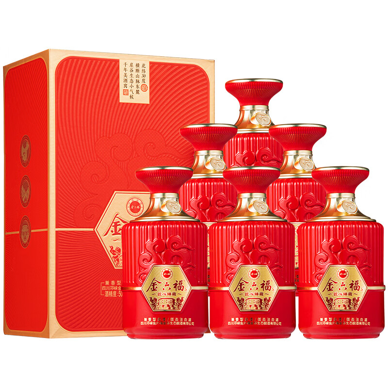 金六福 匠心臻藏 50.8度500ml*6瓶 整箱装 兼香型白酒 结婚喜宴送礼价格:298.00元!