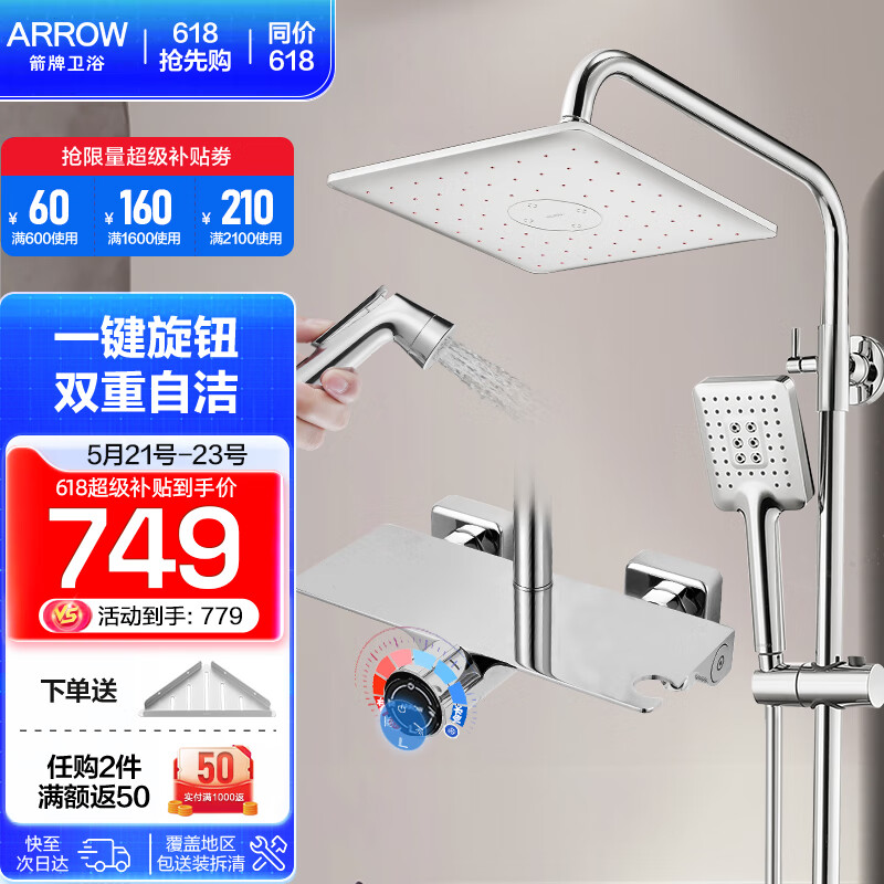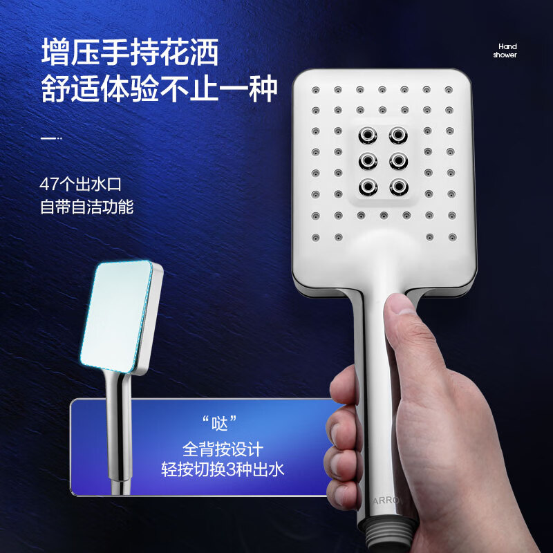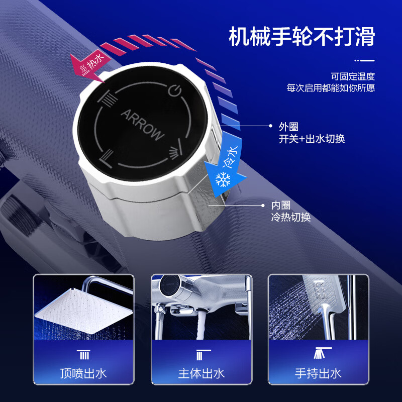 箭牌(ARROW)淋浴花洒套装 自洁淋浴喷头升级下出水 洗澡沐浴易洁手持顶喷 四功能一键旋钮自洁花洒34104CP价格:845.00元!