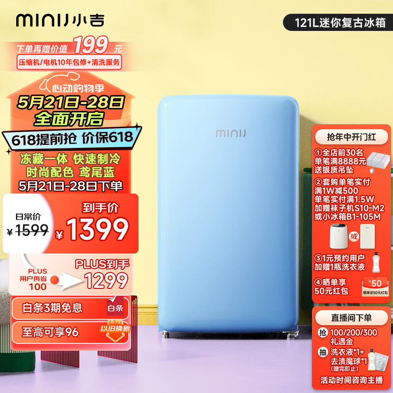 小吉(MINIJ)迷你复古色彩系小冰箱 冷冻冷藏一体 租房宿冰箱小型家用舍办公室节能低噪客厅冰箱礼物 BC-121FA价格:1499.00元!