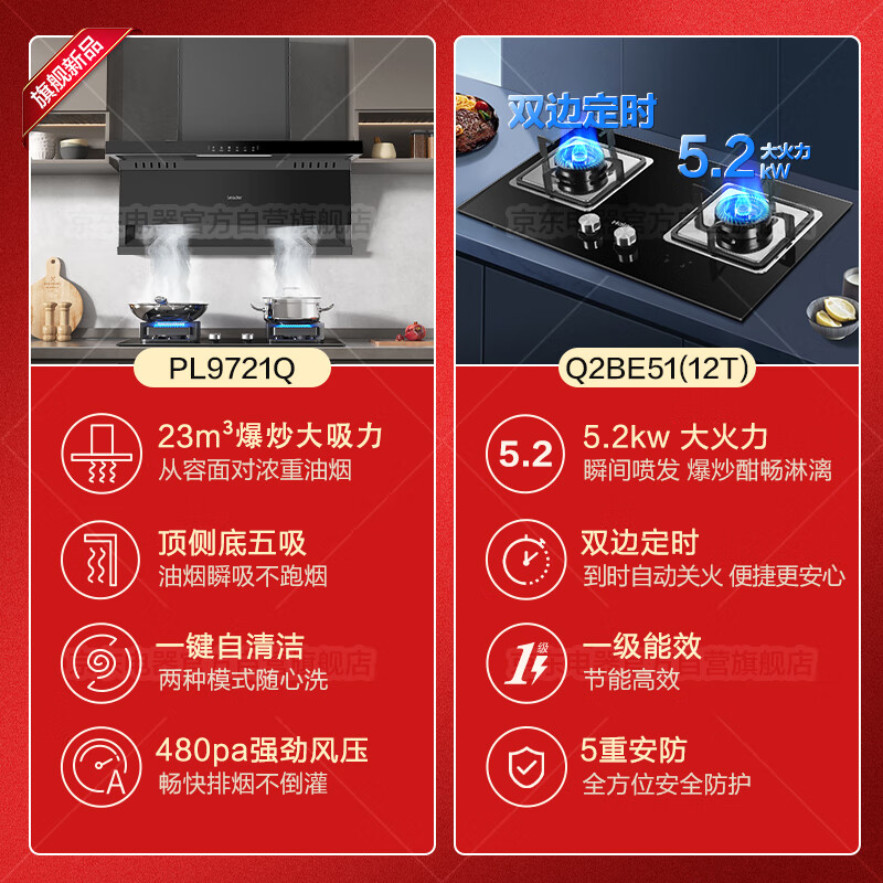 海尔(Haier)智家出品抽油烟机燃气灶套装 挥手智控 7字型23m3油烟机家用 PL9721Q烟灶套装5.2KW定时灶价格:2549.00元!