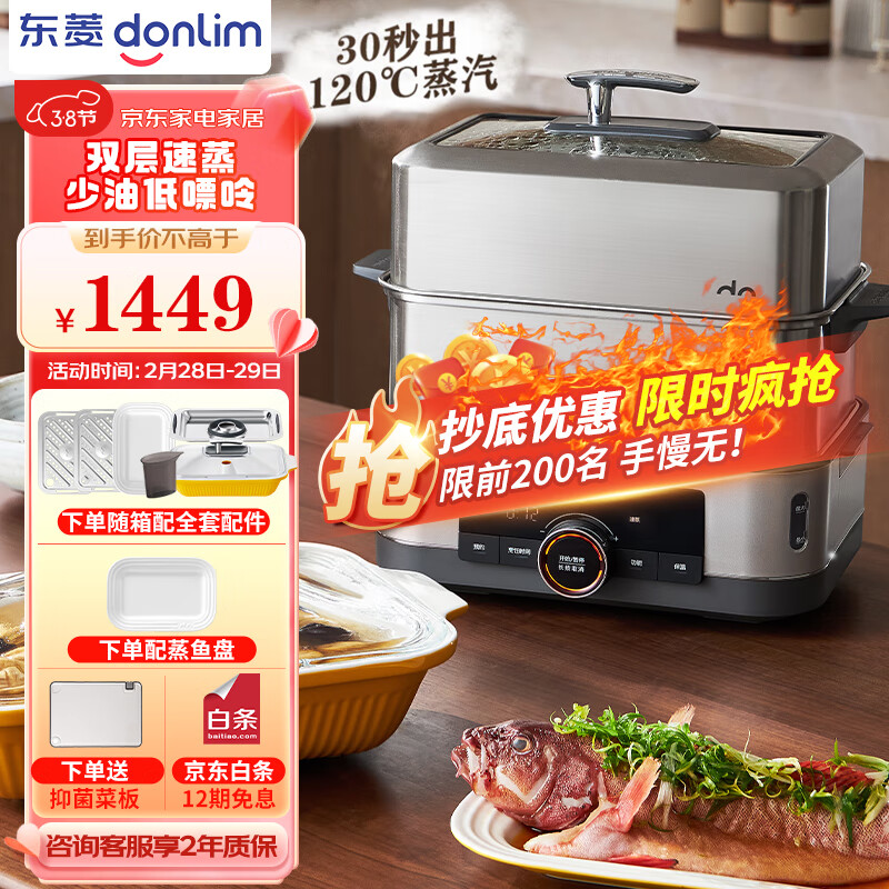 东菱(Donlim)蒸汽锅家用电蒸锅多用途锅炖蒸煮一体电蒸箱汽锅鸡 多层不锈钢大容量DL-1005(标配+蒸鱼盘)价格:1468.00元!