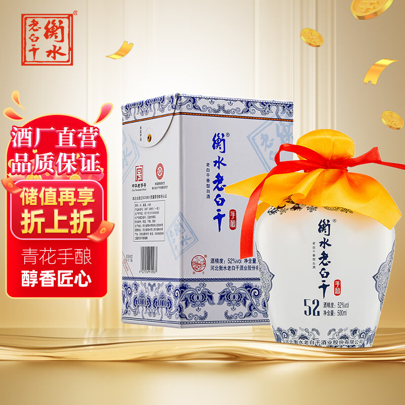 衡水老白干 青花手酿 老白干香型白酒 52度500ml 单瓶装 口粮白酒价格:89.00元!