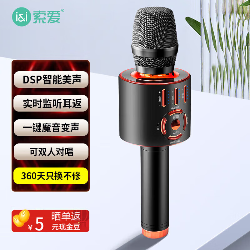 索爱(soaiy)MC25无线k歌手机麦克风话筒录音主播声卡套装唱歌神器音响一体无线蓝牙家庭ktv 雅典黑价格:149.00元!