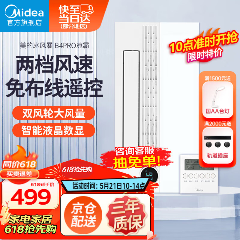 美的(Midea)凉霸照明一体冷霸嵌入式集成吊顶厨房冷风机冷风扇无线遥控吹风扇价格:599.00元!