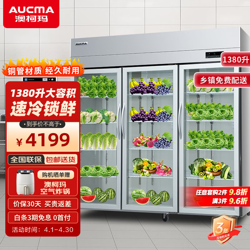 澳柯玛(AUCMA)保鲜柜展示柜冷藏双开门立式冰柜商用大容量水果蔬菜饮料超市饭店大容量冰箱陈列柜商用冰箱 铜管材质 三门1380升 VC-1380AJ价格:4199.00元!