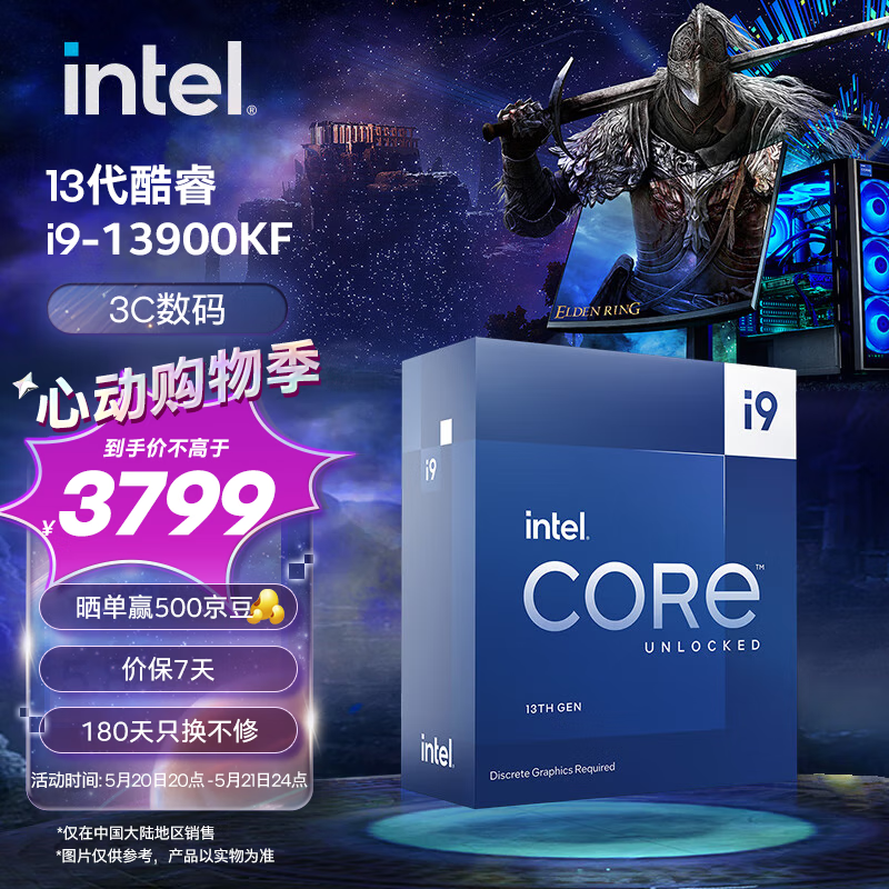 英特尔(Intel) i9-13900KF 酷睿13代 处理器 24核32线程 睿频至高可达5.8Ghz 36M三级缓存 台式机CPU价格:3799.00元!