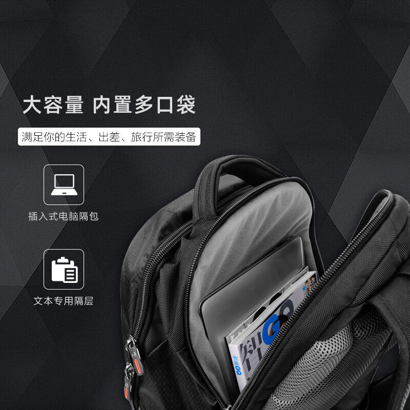 5、这款双肩包设计的非常好,内部空间很大,布局十分科学,内部还有一些可以放重要物品的暗包。使用的材料摸上去十分耐磨,手感也很舒服。总体上性价比十分高,新秀丽这个牌子值得信赖,非常满意的一次购物体验!