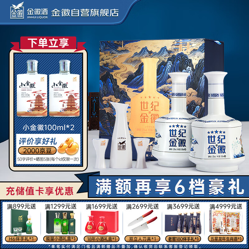 金徽 世纪金徽五星 浓香型白酒 52度 500ml*2瓶 礼盒装价格:502.00元!