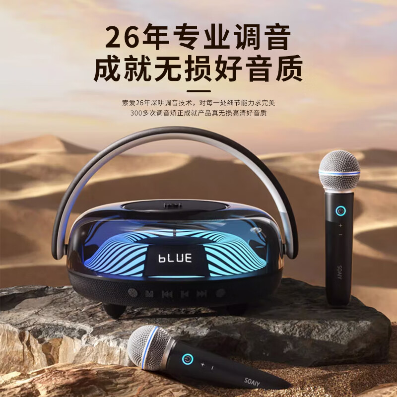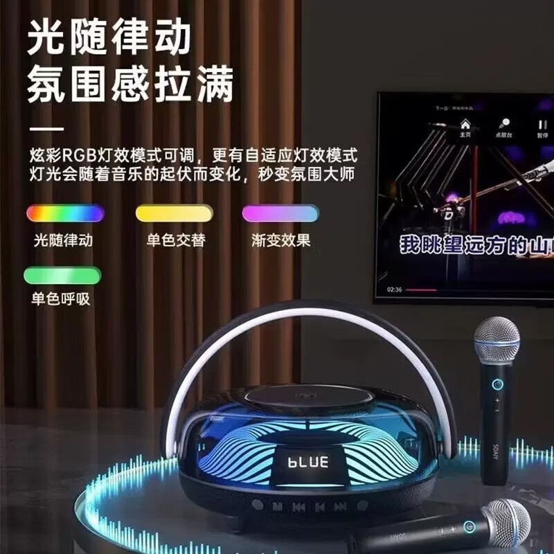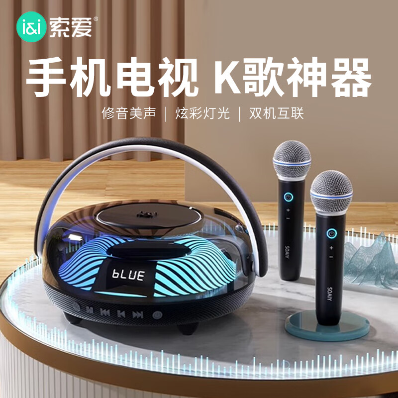 索爱(soaiy)K59音响一体麦克风儿童KTV话筒家用蓝牙音箱琉璃灯光户外k歌小型便携式手提广场舞低音炮双麦黑色价格:299.00元!