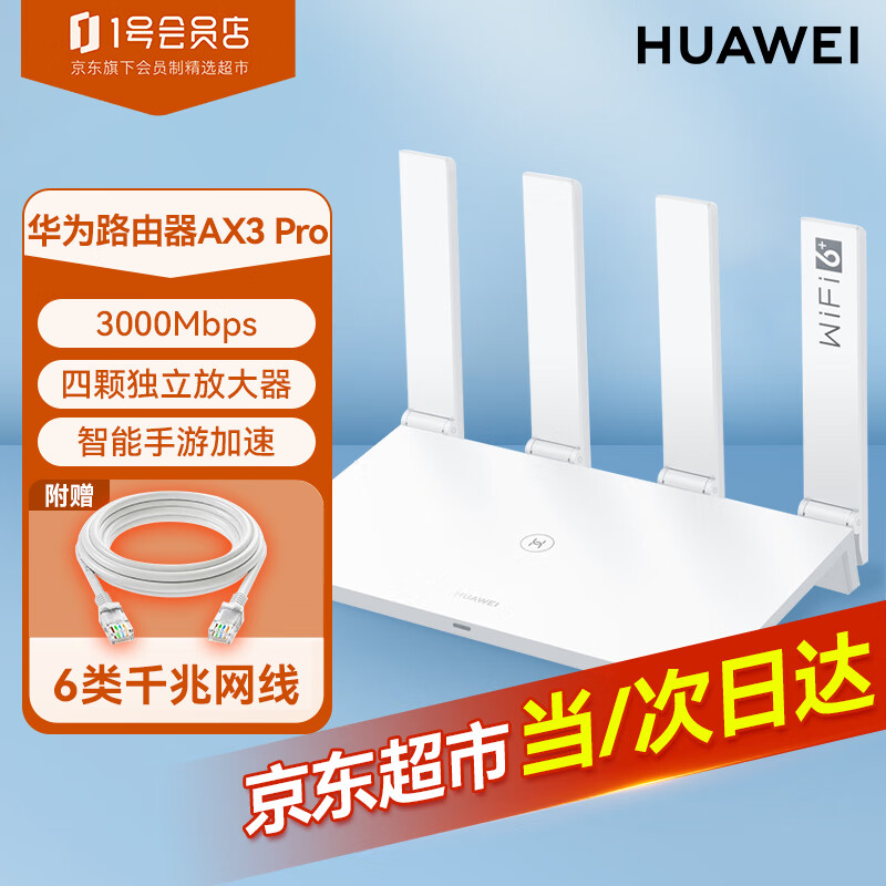 华为(HUAWEI)路由器AX3 Pro 家用千兆无线路由器 wifi6+ 穿墙信号放大器 智能分频 3000M高速路由价格:279.00元!