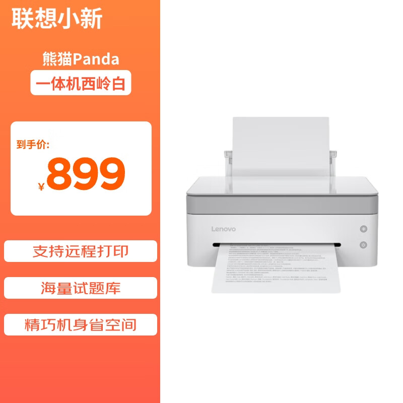联想小新熊猫Panda打印机 学生家用办公商用 黑白激光高速打印/云打印/扫描/复印一体机 西岭白价格:899.00元!