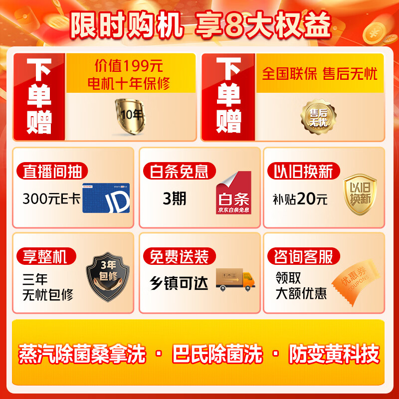 美的(Midea)滚筒洗衣机全自动 超薄机身560mm 巴氏除菌 BLDC变频 蒸汽除菌桑拿洗 MG100V11F 简尚系列 10公斤价格:1388.00元!