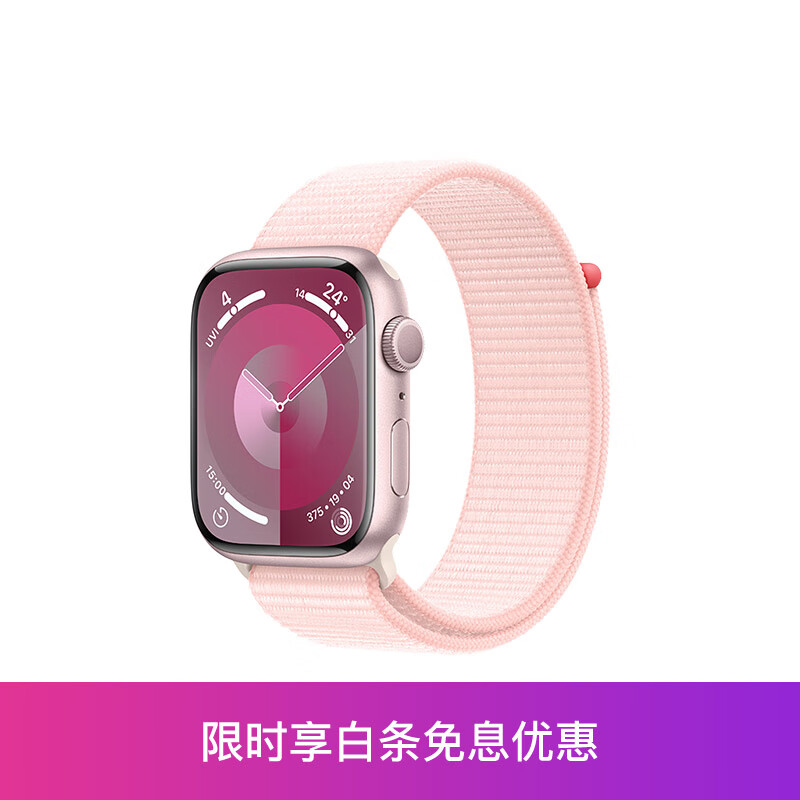 Apple/苹果 Watch Series 9 智能手表GPS款45毫米粉色铝金属表壳 亮粉色回环式运动表带 S9 MR9J3CH/A【免息版】价格:3199.00元!